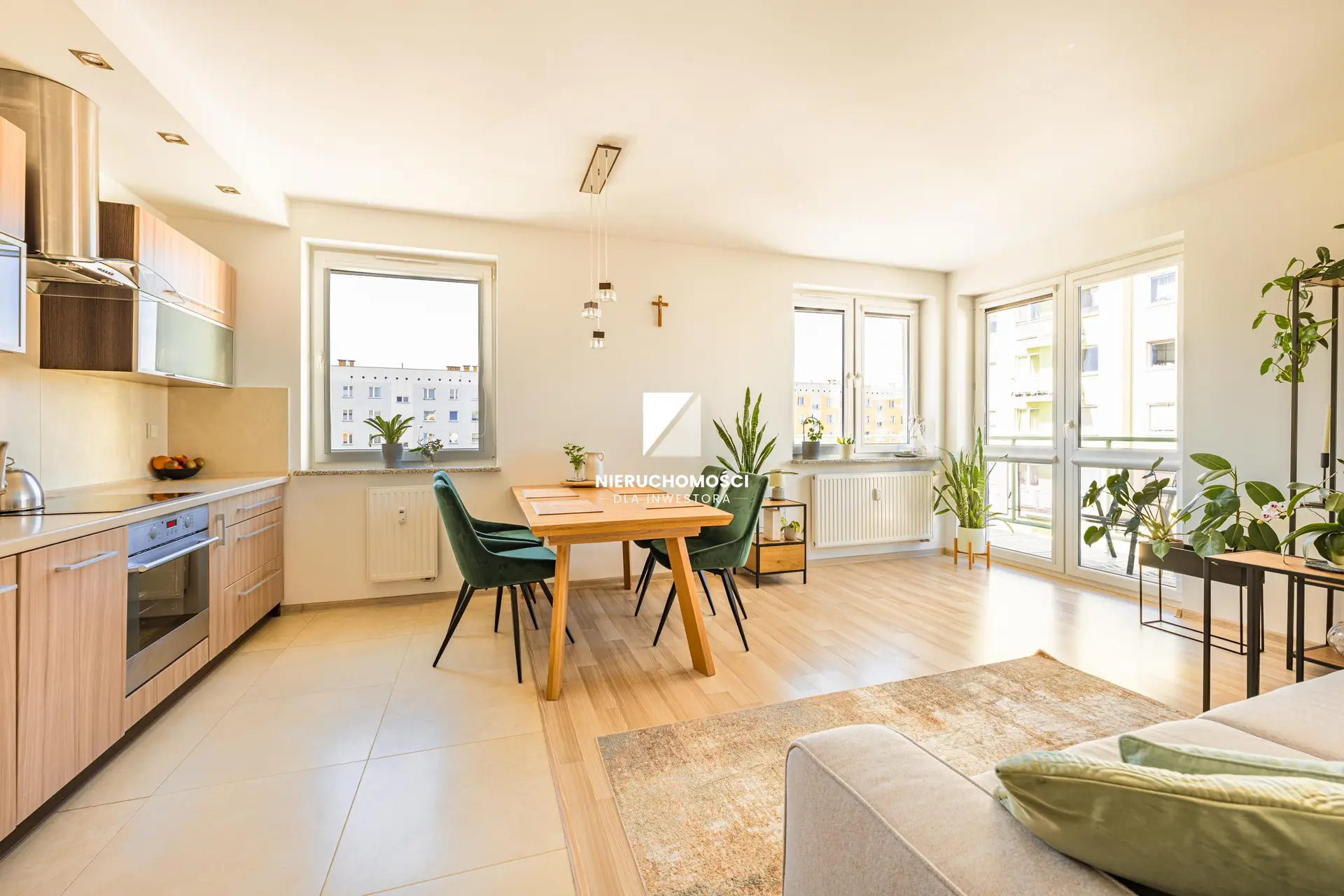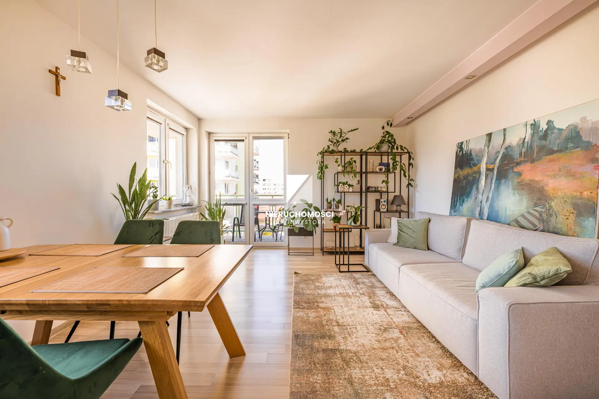 Dużym atutem nieruchomości jest obszerny balkon, stanowiący naturalne przedłużenie salonu. To idealne miejsce na poranne światło, letni odpoczynek, rośliny, chwilę ciszy po pracy czy wieczorne spotkanie przy lampce wina.